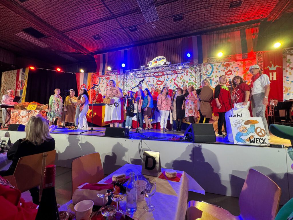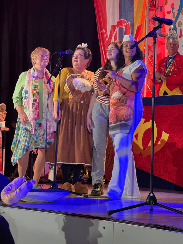 Es war ein gelungenes Programm mit wundervollen Texten und möchten uns auch nochmal bedanken bei Bardo der unsere Texte schreibt und uns auch sonst unterstützt. Ein DANKE auch an die musikalische Begleitung von Thorsten am Schlagzeug und Godfried am Keyboard. Es hat viel Spaß gemacht mit unserer Mädelstruppe über die ganze Übungszeit bei den Auftritten beim Umzug AKK u.s.w…….